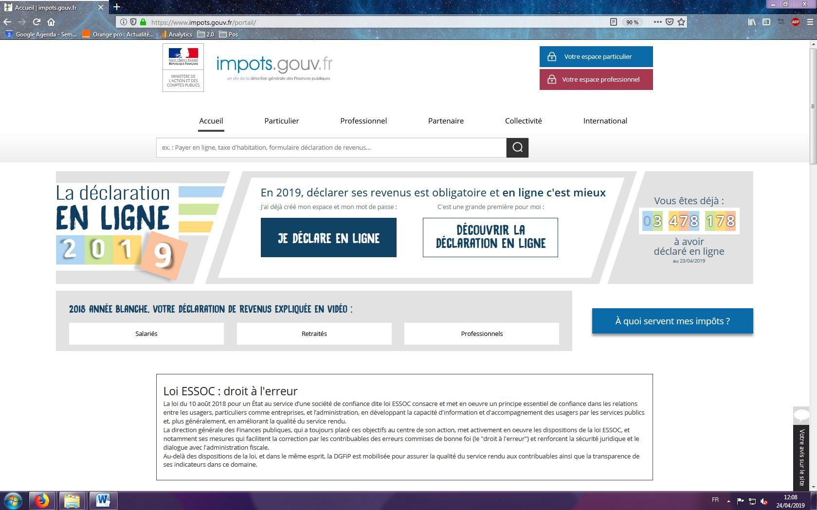Source : capture d’écran de la page d’accueil du site « impots.gouv.fr »