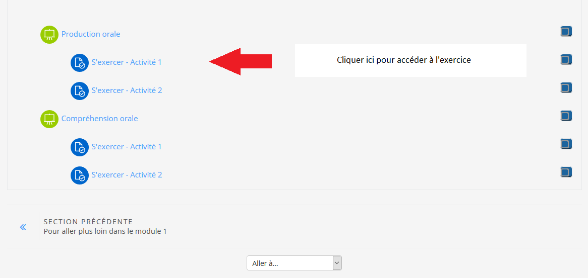 Récupérer sur votre ordinateur, un fichier audio ou vidéo enregistré depuis votre téléphone. Aller dans la page du module 2 et déposer le fichier dans la remise d'exercice qui s'intitule : S'exercer - Activité 1